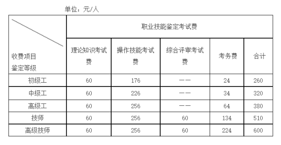我院职业技能等级认定收费标准如下: