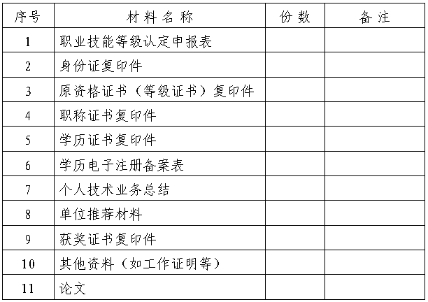 1.湖南省职业技能等级认定申报表 1 份。