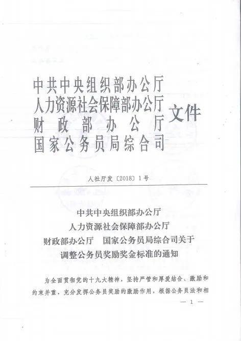 为全面贯彻党的十九大精神,坚持严管和厚爱结合、激励和约束并重,充分发挥公务员奖励的激励作用,根据公务员法和相关法律法规,现将公务员奖励奖金标准调整如下:
